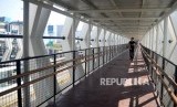 Pejalan kaki mengunakan skybridge penghubung Stasiun LRT Jakarta Veldrome-Halte Transjakarta Pemuda di kawasan Rawamangun, Jakarta, Jumat (26/7). (FOTO : Republika/Prayogi)