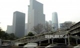 REPUBLIKA.CO.ID, JAKARTA -- Warga menggunakan masker saat melintasi kawasan Sudirman, Jakarta, Senin (29/7).