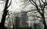 Gedung bertingkat yang diselimuti asap polusi di kawasan Gatot Subroto, Jakarta, Senin (29/7). (FOTO : Republika/Putra M. Akbar)