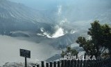 REPUBLIKA.CO.ID, BANDUNG -- Kepulan asap putih di kawah Gunung Tangkuban Parahu berangsur-angsur normal, Senin (29/7). Meski aktivitas vulkanik kawah Tangkuban Parahu menurun, namun dihimbau kewaspadaan harus tetap dijaga.