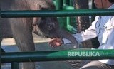 Petugas bermain dengan bayi Gajah Sumatra (Elephas Maximus sumatranus) di Kebun Binatang Surabaya, Jawa Timur, Selasa (30/7/2019). (FOTO : Antara/Zabur Karuru)