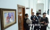 Petugas kepolisian dan kamdal berjaga-jaga didepan ruang kerja Sekda Jawa Barat Iwa Karniwa saat penggeledehan oleh KPK, di Gedung Sate, Kota Bandung, Rabu (31/7). (FOTO : Republika/Edi Yusuf)
