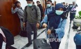 Petugas Komisi Pemberantasan Korupsi (KPK) keluar dari ruang kerja Sekda Jawa Barat Iwa Karniwa usai melakukan pemeriksaan, di Gedung Sate, Kota Bandung, Rabu (31/7). (FOTO : Republika/Edi Yusuf)