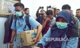 Petugas Komisi Pemberantasan Korupsi (KPK) keluar dari Gedung Sate, Kota Bandung, usai melakukan pemeriksaan ruang kerja Sekda Jawa Barat Iwa Karniwa, Rabu (31/7). (FOTO : Republika/Edi Yusuf)