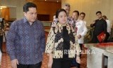 Ketua Komite Olimpiade Indonesia Erick Thohir dan Menteri Koordinator Bidang Pembangunan Manusia dan Kebudayaan Puan Maharani saat menghadiri acara Seminar Women In Sport di Jakarta, Rabu (31/7). (FOTO : Republika/Putra M. Akbar)