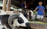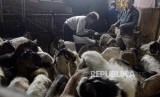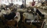 Pedagang melayani pembeli memilih kambing di Jalan Sabeni, Tanag Abang, Jakarta, Jumat (2/8). (FOTO : Republika/Putra M. Akbar)