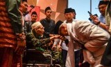 Tokoh Nahdlatul Ulama (NU) KH Maimun Zubair (duduk di kursi roda) menghadiri acara Deklarasi Kyai Kampung menangkan Jokowi-Maruf Amin Tanpa Hoaks di Tasikmalaya Senin (18/2/2019) malam. (FOTO : Antara/Adeng Bustomi)
