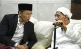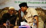Calon Presiden no urut 2 Prabowo Subianto (kanan) berbincang dengan Kyai Maimoen Zubair (kiri) saat mengunjungi pondok pesantren Al-Anwar di Sarang, Rembang, Jawa Tengah, Sabtu (29/9). (FOTO : Antara/Yusuf Nugroho)
