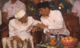 Presiden Joko Widodo (kanan) berbincang dengan Pimpinan Pondok Pesantren Al-Anwar Sarang Maimoen Zubair (kiri) saat menghadiri cara Sarang Berzikir Untuk Indonesia Maju di Rembang, Jawa Tengah, Jumat (1/2/2019). (FOTO : Antara/Akbar Nugroho Gumay)