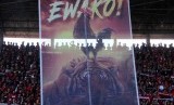 Suporter PSM Makassar membentangkan spanduk saat mendukung timnya dalam laga PSM Makassar melawan Persija Jakarta keluar pada final Piala Indonesia 2019 di Stadion Andi Mattalatta, Makassar, Sulawesi Selatan, Selasa (6/8/2019). (FOTO : ANTARA FOTO)