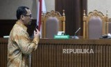 Mantan Kepala Kantor Wilayah Kementerian Agama Jawa Timur Haris Hasanuddin menjalani sidang putusan di Pengadilan Tipikor,Jakarta, Rabu (7/8). (FOTO : Republika/Prayogi)