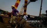Pekerja saat beraktivitas di pabrik peleburan baja PT Hong Xin Steel, Cakung, Jakarta, Kamis (8/8). (FOTO : Republika/Putra M. Akbar)