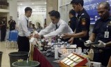 Petugas saat memusnahkan barang sitaan Bea dan Cukai bersama PT Pos Indonesia (Persero) hasil pengawasan terhadap barang kiriman impor di Kantor Bea dan Cukai, Pasar Baru, Jakarta, Jumat (9/8). (FOTO : Republika/Putra M. Akbar)