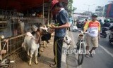 REPUBLIKA.CO.ID, JAKARTA -- Sejumlah lapak pedagang hewan kurban sudah mulai buka di trotoar di sekitar Jalan KH Mas Mansyur, Tanah Abang, Jakarta Pusat, tepatnya di trotoar depan Rusun Tanah Abang dan depan Pasar Said Naum. Sapi dan kambing ditempatkan didalam kandang dari bambu di lapak yang berada di trotoar.