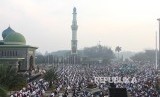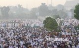 REPUBLIKA.CO.ID, PEKANBARU -- Ribuan warga melaksanakan ibadah shalat Idul Adha di halaman Masjid Raya Annur saat kabut asap pekat kebakaran hutan dan lahan menyelimuti Kota Pekanbaru, Riau, Ahad (11/8).