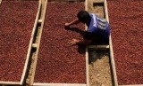 Pekerja menjemur bijih kopi Arabika petik merah di Kwadungan, Kledung, Temanggung, Jawa Tengah, Senin (12/8/2019). (FOTO : ANTARA FOTO)