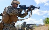 Sejumlah prajurit Korps Marinir TNI AL dan Marinir Amerika Serikat (USMC) yang tergabung dalam Latihan Bersama Platoon Exchange (Platex) berlatih Tembak Tempur Offensive (TTO) dan Tembak Tempur Defensive (TTD) di Pusat Latihan Pertempuran Marinir 5 Baluran, Banyuputih, Situbondo. Selasa (13/8/2019). (FOTO : ANTARA FOTO)