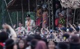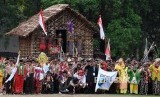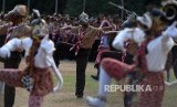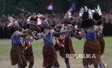 Anggota pramuka menampilkan tarian daerah usai upacara peringatan Hari Ulang Tahun (HUT) ke-58 Pramuka yang dihadiri Presiden Joko Widodo di Bumi Perkemahan Cibubur, Jakarta, Rabu (14/8). (FOTO : Wahyu Putro/Antara)