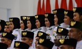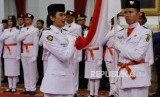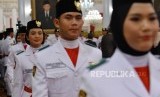 Anggota Pasukan Pengibar Bendera Pusaka (Paskibraka) saat pengukuhan di Istana Negara, Jakarta, Kamis (15/8). (FOTO : Republika/Edwin Dwi Putranto)