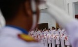 Anggota Pasukan Pengibar Bendera Pusaka (Paskibraka) saat acara pengukuhan di Istana Negara, Jakarta, Kamis (15/8). (FOTO : Republika/Edwin Dwi Putranto)
