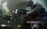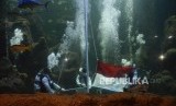Sejumlah penyelam saat tampil di dalam air (underwater) dalam rangka memperingati hari kemerdekaan Indonesia yang ke-74 di Seaworld, Ancol, Jakarta, Sabtu (17/8). (FOTO : Republika/Putra M. Akbar)