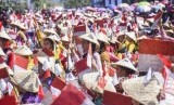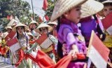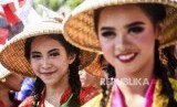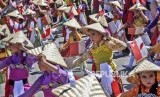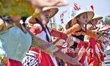 REPUBLIKA.CO.ID, BANDUNG -- Ribuan penari melakukan tarian Ceta Cetok Kuminyar Sabilulungan di ruas Jalan Al Fathu, Soreang, Kabupaten Bandung, Ahad (18/8).