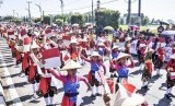 Ribuan penari melakukan tarian Ceta Cetok Kuminyar Sabilulungan di ruas Jalan Al Fathu, Soreang, Kabupaten Bandung, Ahad (18/8). (FOTO : Abdan Syakura_Republika)