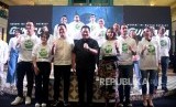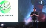 REPUBLIKA.CO.ID, JAKARTA -- Executive Produser Bumilangit Entertainment Erick Thohir memberikan sambutan dalam peluncuran jagat sinema Bumilangit Jilid 1 di Plaza Senayan, Jakarta, Ahad (18/8).