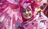 Peserta mengikuti parade Karnaval Kemerdekaan Sabilulungan di ruas Jalan Al Fathu, Soreang, Kabupaten Bandung, Ahad (18/8). (FOTO : Abdan Syakura_Republika)