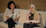 Ketua Umum Adaro Foundation Okty Damayanti (kanan) bersama Presiden Direktur Persada Capital Investama Arini Subianto (kiri) keterangan kepada wartawan di Jakarta, Senin (19/8). (FOTO : Republika/Prayogi)