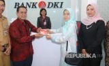 Pemimpin Grup Pengembangan Jaringan Bank DKI, Romy Wijayanto (kiri) berfoto bersama nasabah Bank DKI usai peresmian relokasi Kantor Layanan Gatot Subroto dari gedung Gedung SME Tower UMKM ke Jl. Mampang Prapatan Raya No. 68-B, Jakarta (19/08). (FOTO : Bank DKI)