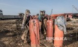 REPUBLIKA.CO.ID, JAKARTA -- Gema bunyi besi kapal bekas yang beradu terdengar memekakkan telinga. Suara desis las diiringi suara besi berdebum bersahutan, saat memasuki lokasi pembelahan kapal di kawasan Cilincing, Jakarta Utara.