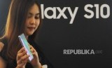 Penjualan Perdana S10. Pramuniaga mencoba Samsung Galaxy S10 series saat penjualan perdana di Mall Central Park, Jakarta, Jumat (8/3/2019). (FOTO : Antara/Abriawan Abhe)