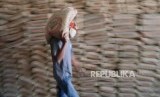 Seorang pekerja memindahkan sak semen di gudang kawasan Jakarta Utara, Rabu (21/8). (FOTO : Yogi Ardhi/Republika)