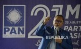 Ketua Umum PAN Zulkifli Hasan memberikan sambutan saat perayaan HUT ke-21 PAN di Pluit, Jakarta, Jumat (23/8/2019). (FOTO : Republika/Putra M. Akbar)