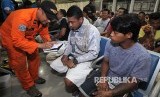 Petugas mendata korban selamat kapal terbakar KM Santika Nusantara setelah turun dari kapal KN Chundamani P 116 di Gapura Surya Nusantara, Pelabuhan Tanjung Perak, Surabaya, Jawa Timur, Sabtu (24/8) (FOTO : Didik Suhartono/Antara)