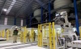 Pekerja beraktivitas di dekat robot pemroses gula tebu di Pabrik Gula (PG) Rejoso Manis Indo (RMI) di Blitar, Jawa Timur, Sabtu (24/8/2019). (FOTO : ANTARA FOTO)
