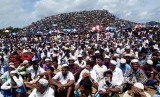Puluhan ribu pengungsi Rohingya memperingati tahun kedua peristiwa genosida Myanmar yang menyebabkan eksodus mereka di Kamp Kutupalong, Cox’s Bazar, Bangladesh, Ahad (25/8). (FOTO : Rafiqur Rahman/Reuters)