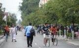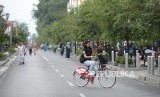REPUBLIKA.CO.ID, YOGYAKARTA -- Warga menikmati suasana hari bebas kendaraan bermotor saat uji coba semi pedestrian Malioboro di Yogyakarta, Selasa (27/8/2019).