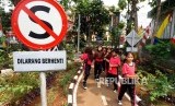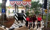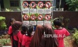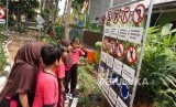 Sejumlah anak-anak memperhatikan rambu-rambu lalu lintas yang terpasang di Taman lalu lintas Kebon Pala, Jakarta, Rabu (28/8). (FOTO : Republika/Prayogi)