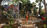 Petugas membersihkan Taman lalu lintas Kebon Pala, Jakarta, Rabu (28/8). (FOTO : Republika/Prayogi)