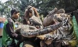 Petugas menata awetan (offset) satwa untuk dimusnahkan di Bandung Zoo, Kota Bandung, Rabu (28/8). (FOTO : Abdan Syakura_Republika)