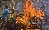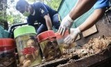 Petugas melakukan pemusnahan awetan (offset) satwa di Bandung Zoo, Kota Bandung, Rabu (28/8). (FOTO : Abdan Syakura_Republika)