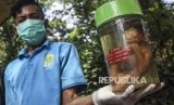Petugas menunjukan awetan (offset) satwa untuk dimusnahkan di Bandung Zoo, Kota Bandung, Rabu (28/8). (FOTO : Abdan Syakura_Republika)