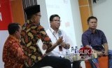 Bersama narasumber Kasubdit pengamanan Aset Wakaf kementerian Agama RI Zaenuri (kiri), Anggota Baznas Irsyadul Halim (kedua kiri), CEO Rumah Zakat Nur Efendi (kedua kanan), Wakil Redaktur Pelaksana Harian Republika Heri Ruslan menyampaikan pemaparannya pada Baznas Development Forum yang bertajuk Zakat dan Kebangsaan, di Kantor Rumah Jakat, Jalan Turangga, Kota Bandung, Kamis (29/8). (FOTO : Republika/Edi Yusuf)