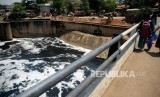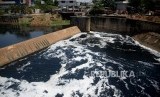 REPUBLIKA.CO.ID, JAKARTA -- Kondisi aliran air sungai yang berbusa di kali Cipinang, Banjir Kanal Timur,Jakarta, Jumat (30/8).