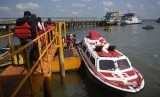 Warga menaiki perahu cepat di Pelabuhan Penyeberangan Penajam Paser Utara, Kalimantan Timur, Jumat (30/8/2019). (FOTO : ANTARA FOTO)