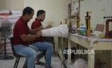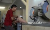 Pekerja menyelesaikan proses pembuatan kaki palsu di Yayasan Peduli Tuna Daksa, Kawasana Sunter Podomoro, Jakarta Utara, Jumat (30/8/2019). (FOTO : Thoudy Badai)