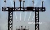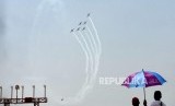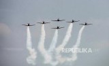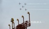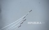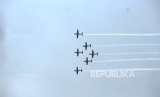 REPUBLIKA.CO.ID, YOGYAKARTA -- Tim aerobatik udara Jupiter Aeorbatic Team (JAT) memeriahkan gelaran Adisucipto Urban Obstacle Run (AUOR) di Yogyakarta, Ahad (1/9). Lomba lari halang rintang ini memperlombakan beberapa nomor lari.