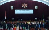 Pengucapan sumpah dan janji saat pelantikan anggota DPRD Provinsi Jawa Barat terpilih pada Rapat Paripurna DPRD Provinsi Jawa Barat, di Gedung Merdeka, Jalan Asia Afrika, Kota Bandung, Senin (2/9). (FOTO : Republika/Edi Yusuf)